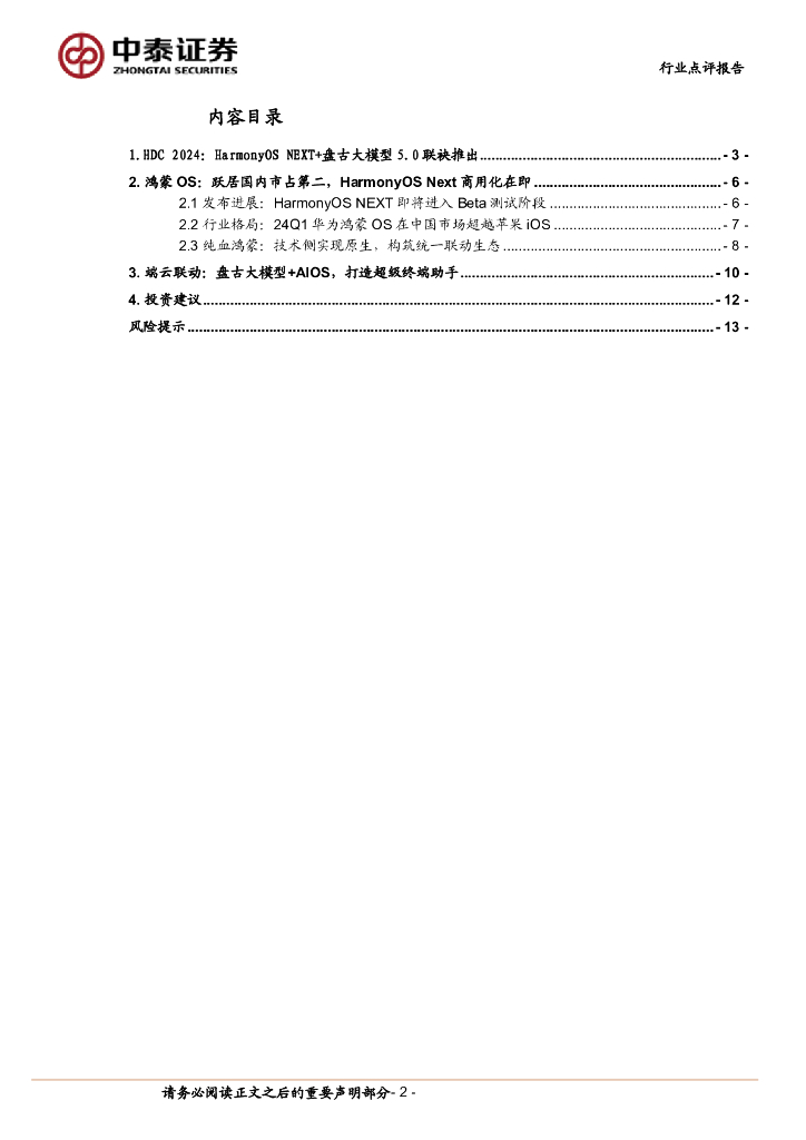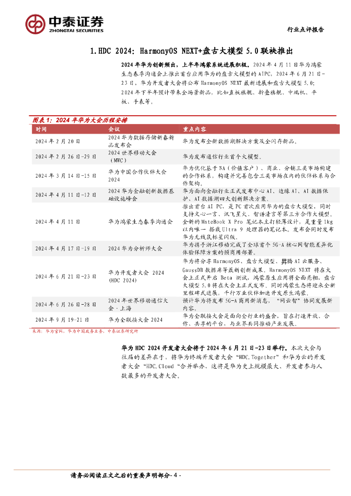 中泰证券:计算机:中泰科技:华为HDC大会在即,纯血鸿蒙+盘古大模型打造超级终端助手.pdf