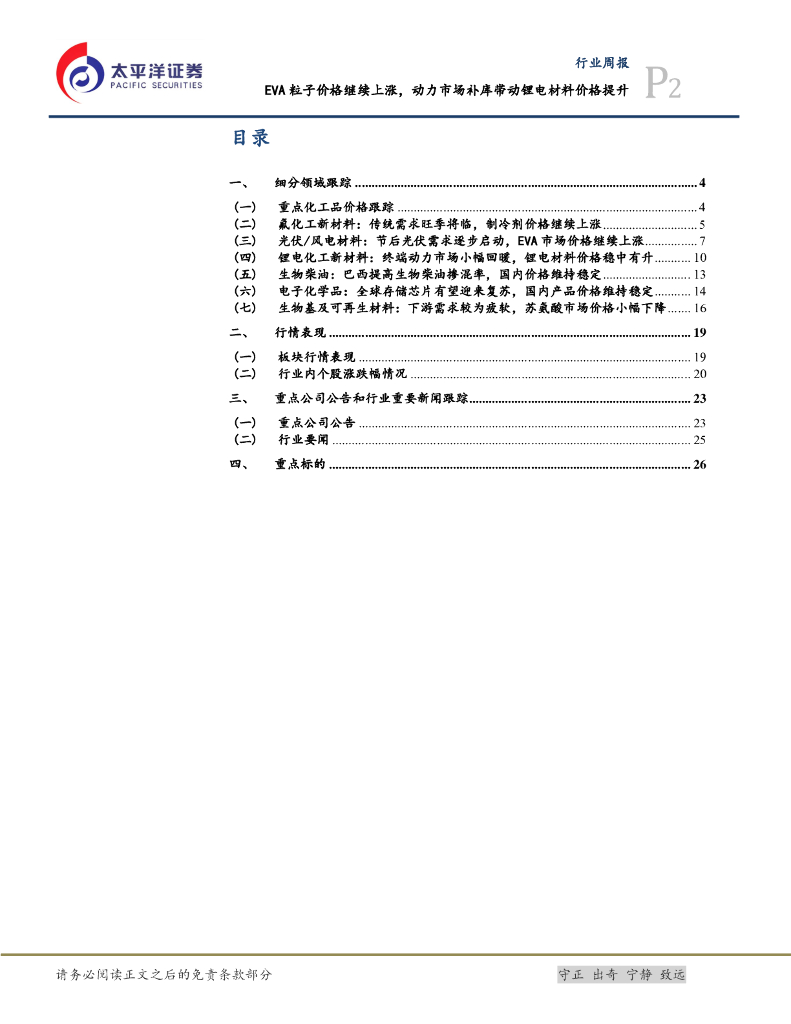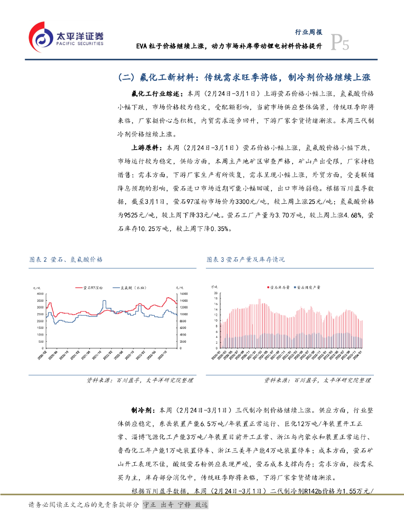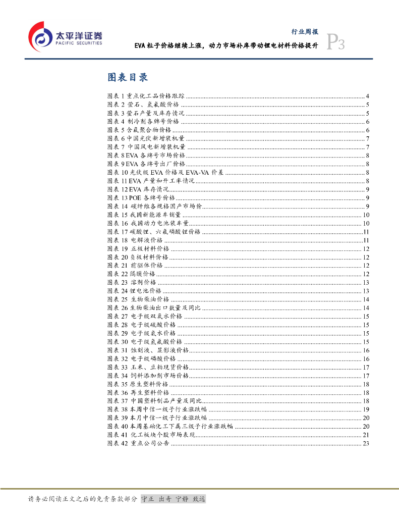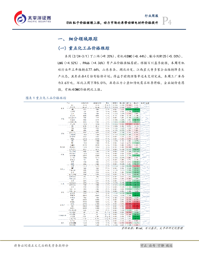 太平洋证券:化工&新材料行业周报:EVA粒子价格继续上涨,动力市场补库带动锂电材料价格提升.pdf