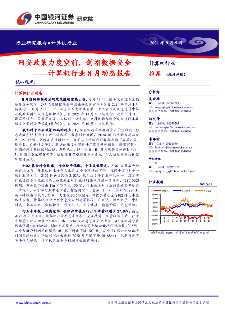 中国银河:计算机行业8月动态报告:网安政策力度空前,剑指数据安全.pdf