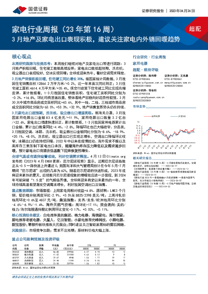 国信证券:家电行业周报(23年第16周):3月地产及家电出口表现积极,建议关注家电内外销回暖趋势.pdf