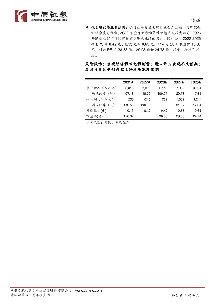 中原证券:中国电影(600977)-年报点评:2022业绩承压,2023有望大幅回升.pdf
