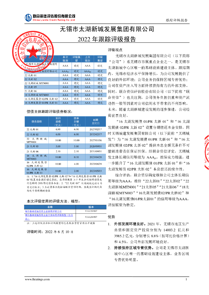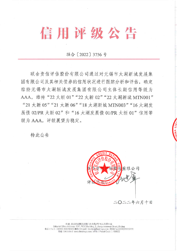 联合资信:无锡市太湖新城发展集团有限公司2022年跟踪评级报告.pdf