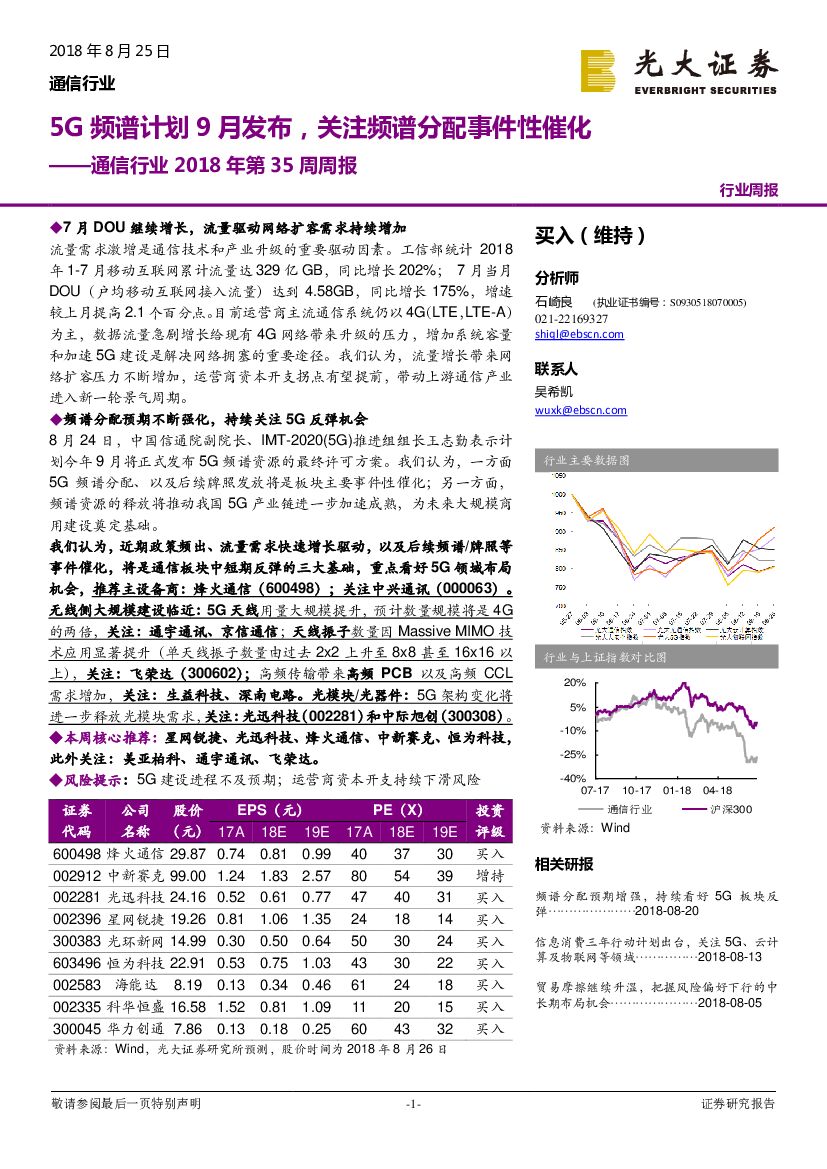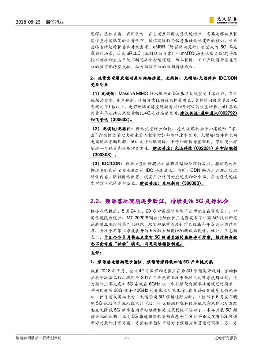 光大证券:通信行业2018年第35周周报:5G频谱计划9月发布,关注频谱分配事件性催化.pdf