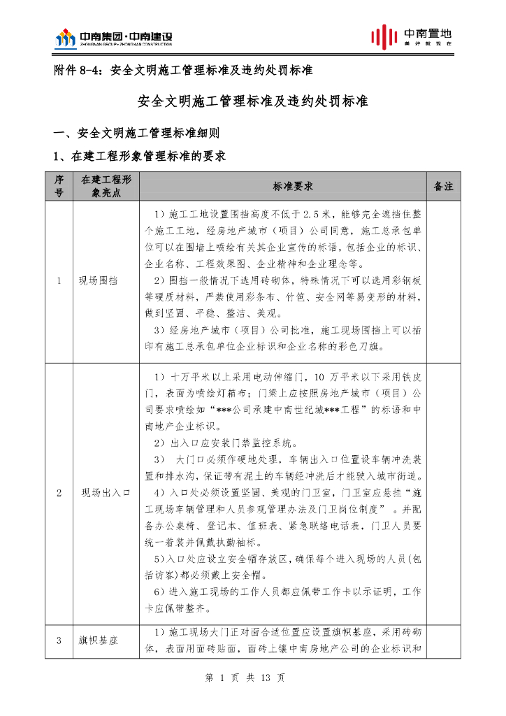 安全文明施工管理标准及违约处罚标准(共13页,内容详细).pdf