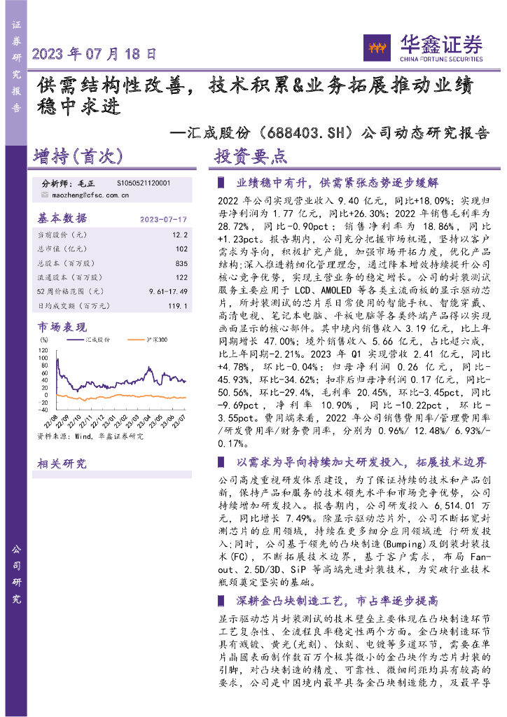 华鑫证券:汇成股份(688403)-公司动态研究报告:供需结构性改善,技术积累&业务拓展推动业绩稳中求进.pdf