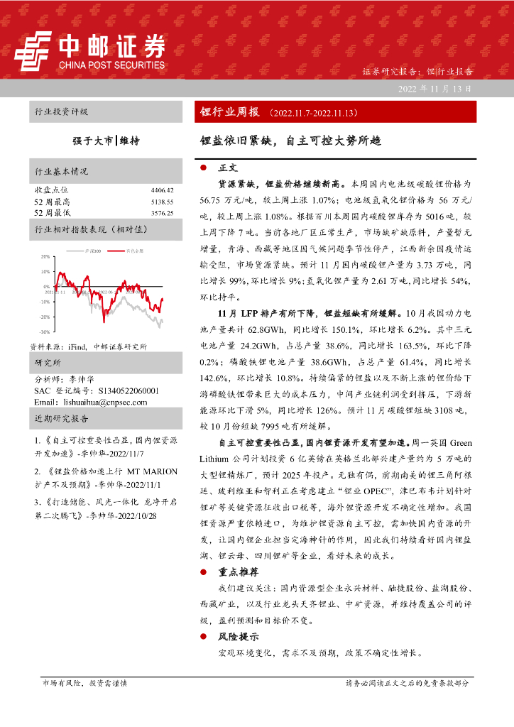 中邮证券:锂行业周报:锂盐依旧紧缺,自主可控大势所趋.pdf