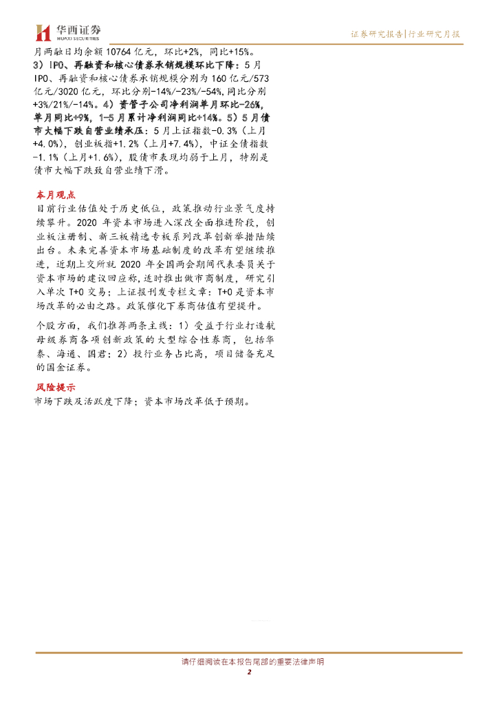 华西证券:证券行业月报:券商5月业绩环比下滑,同比提升,政策催化下估值有望回升.pdf