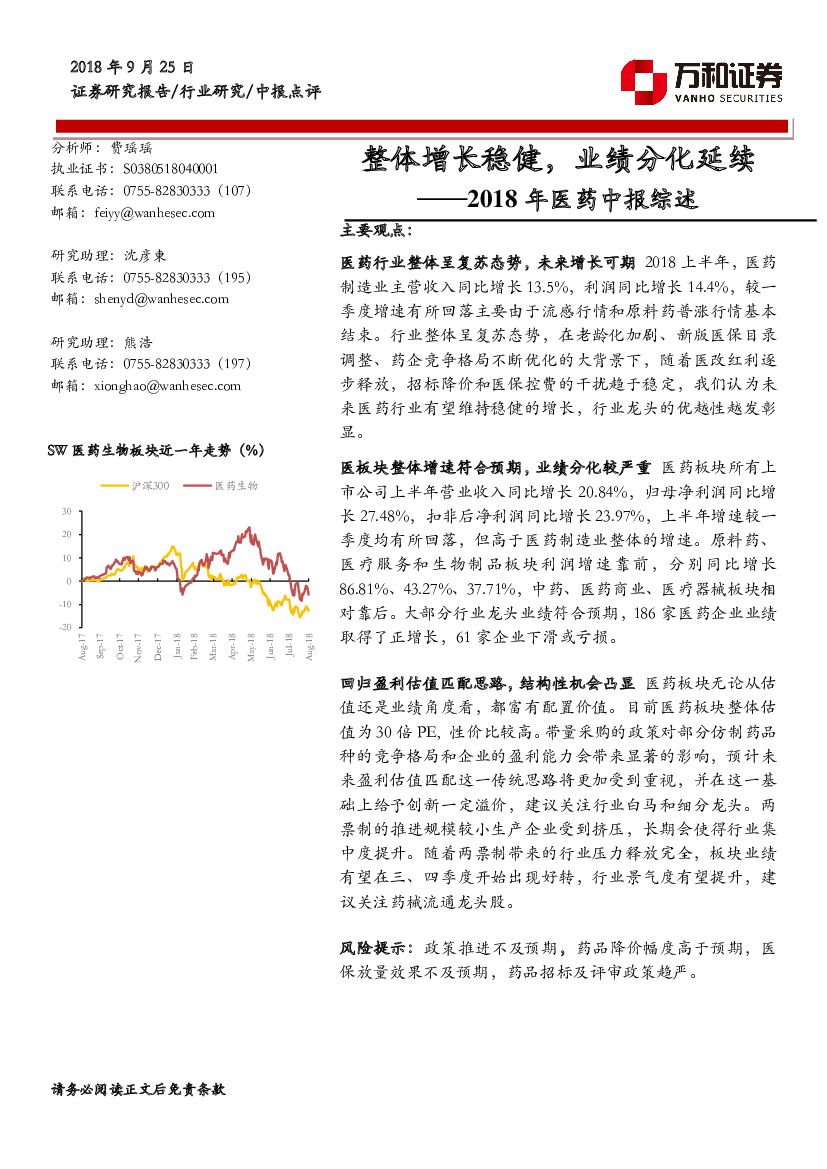 万和证券:2018年医药中报综述:整体增长稳健,业绩分化延续.pdf