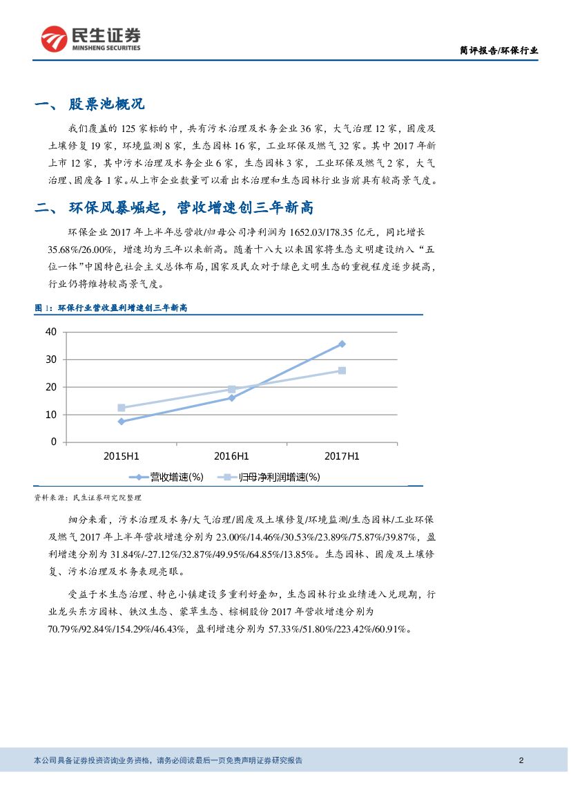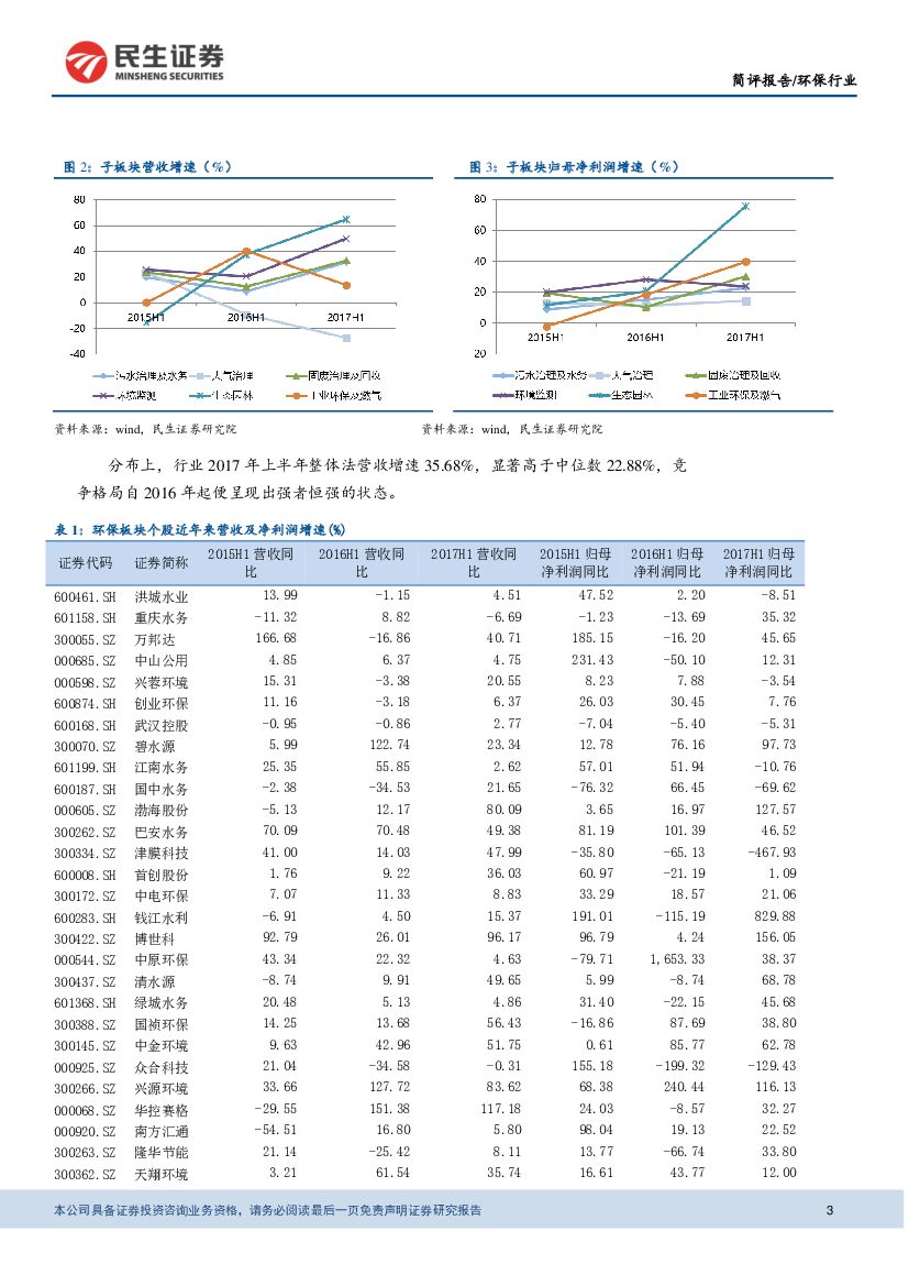 民生证券:环保行业2017年中报综述,营收及盈利同期相比创三年新高.pdf