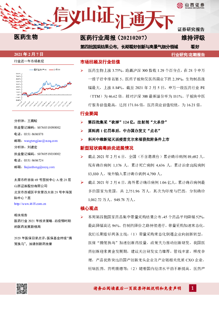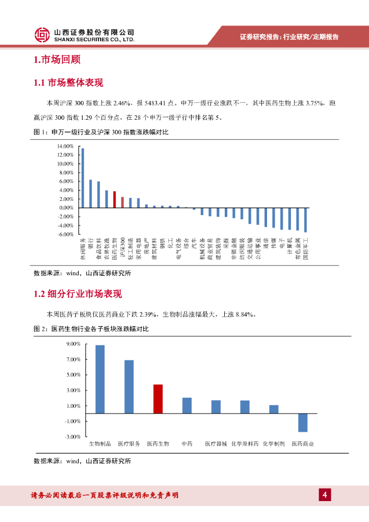 山西证券:医药行业周报:第四批国采结果公布,长期看好创新与高景气细分领域.pdf