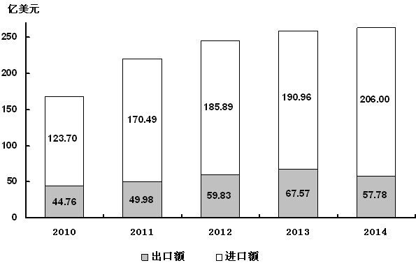 根据海关统计,全年全省累计实现外贸进出口总值263.78亿美元,比上年增长2.1%。其中,出口总值57.78亿美元,下降14.3%;进口总值206.00亿美元,增长7.9%。