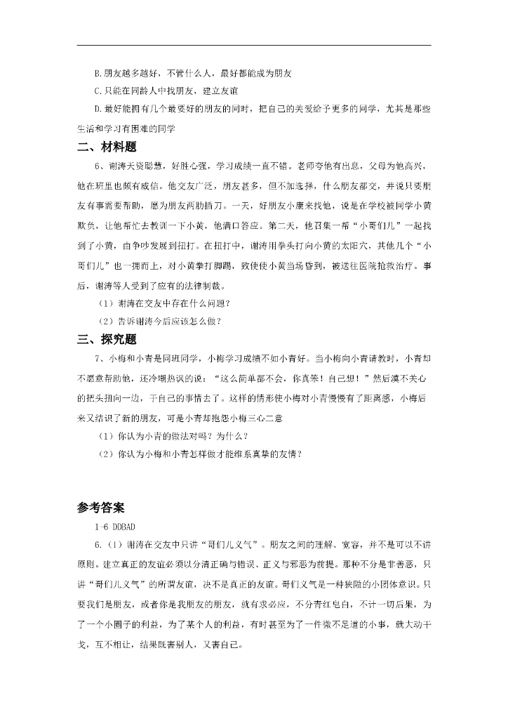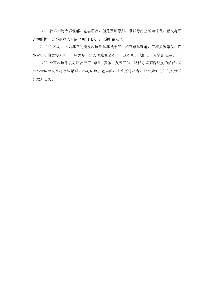 七年级上册 初中道德与法治5.1《让友谊之树常青》同步练习.doc