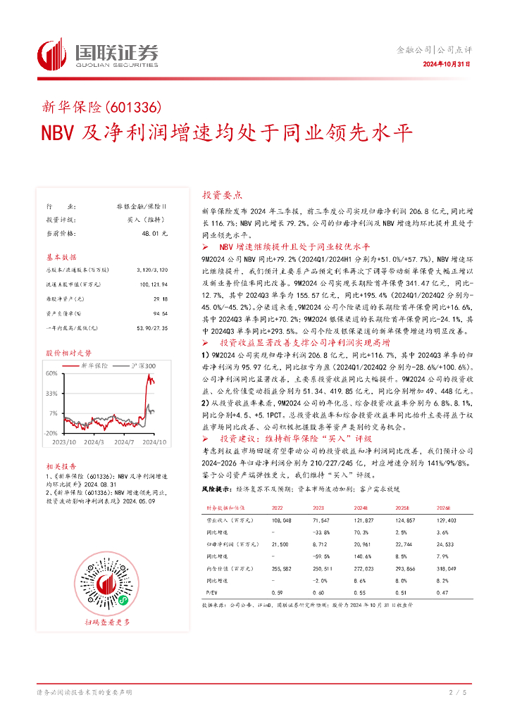 国联证券:新华保险(601336)-NBV及净利润增速均处于同业领先水平.pdf