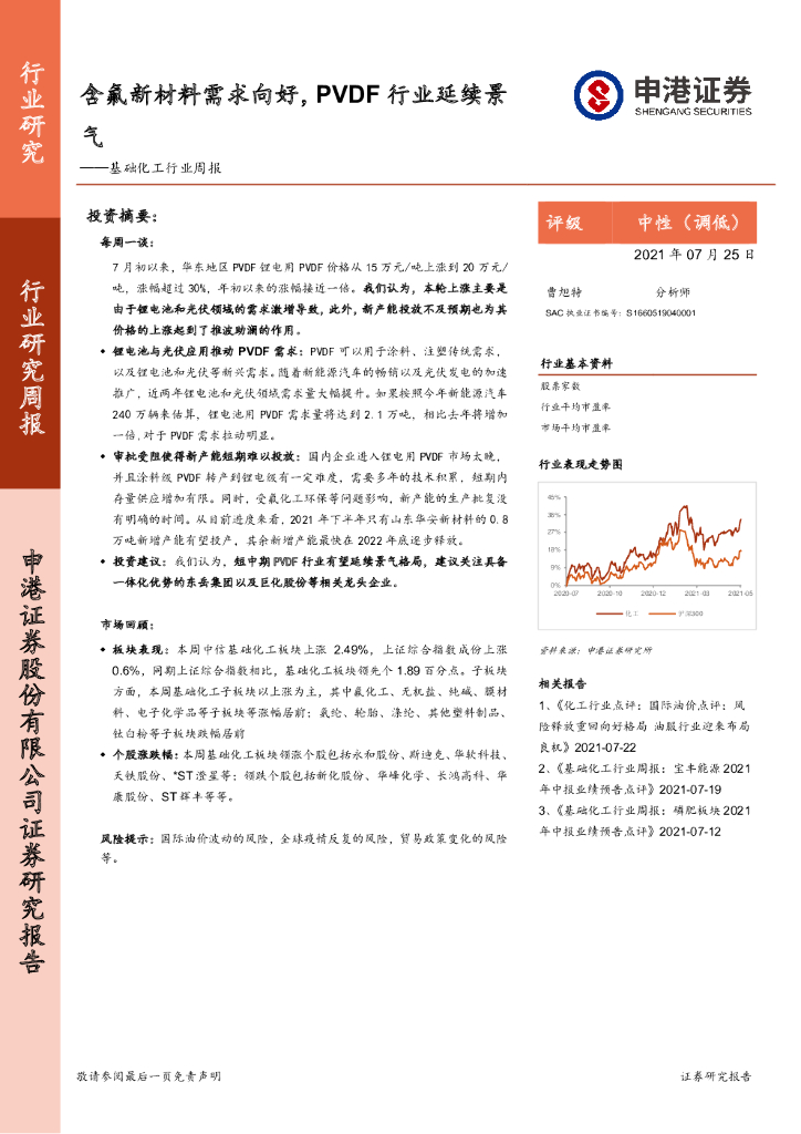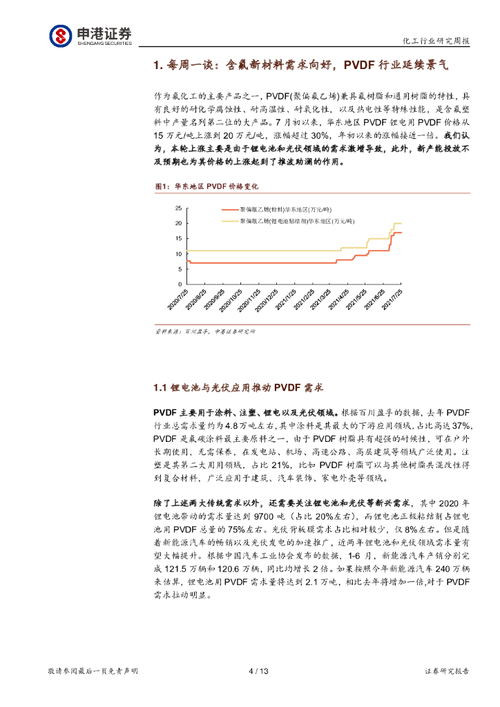 申港证券:基础化工行业周报:含氟新材料需求向好,PVDF行业延续景气.pdf