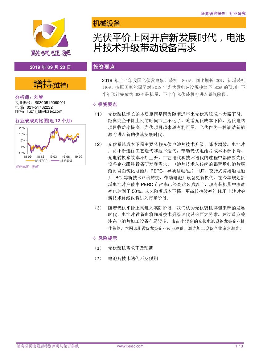 联讯证券:机械设备:光伏平价上网开启新发展时代,电池片技术升级带动设备需求.pdf