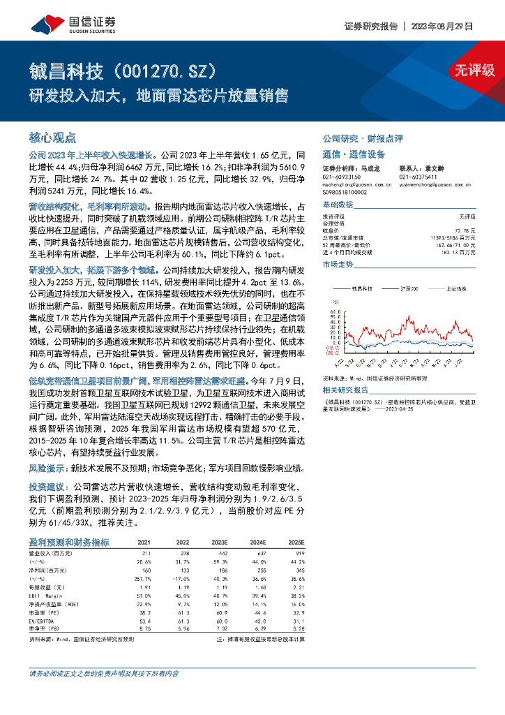 国信证券:铖昌科技(001270)-研发投入加大,地面雷达芯片放量销售.pdf
