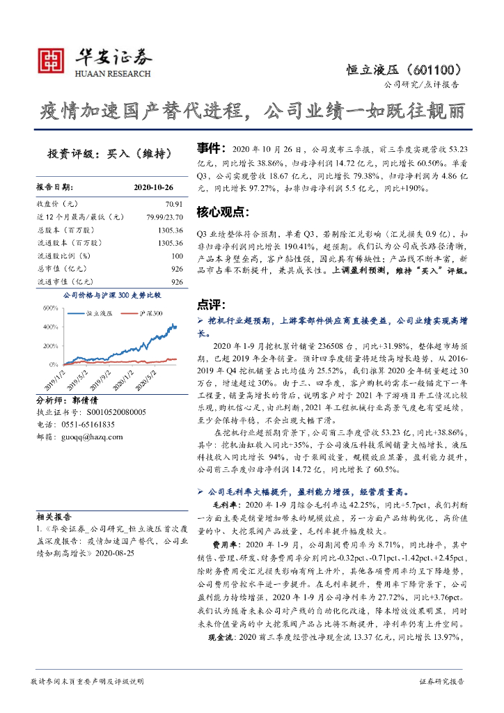 华安证券:恒立液压(601100)-疫情加速国产替代进程,公司业绩一如既往靓丽.pdf