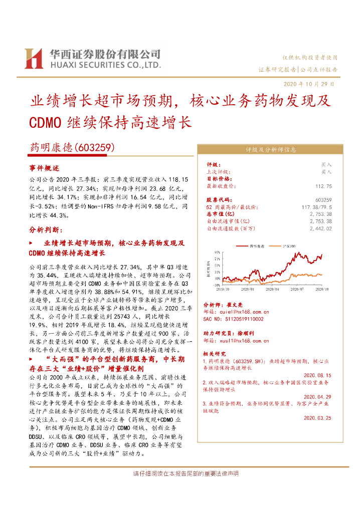 华西证券:药明康德(603259)-业绩增长超市场预期,核心业务药物发现及CDMO继续保持高速增长.pdf