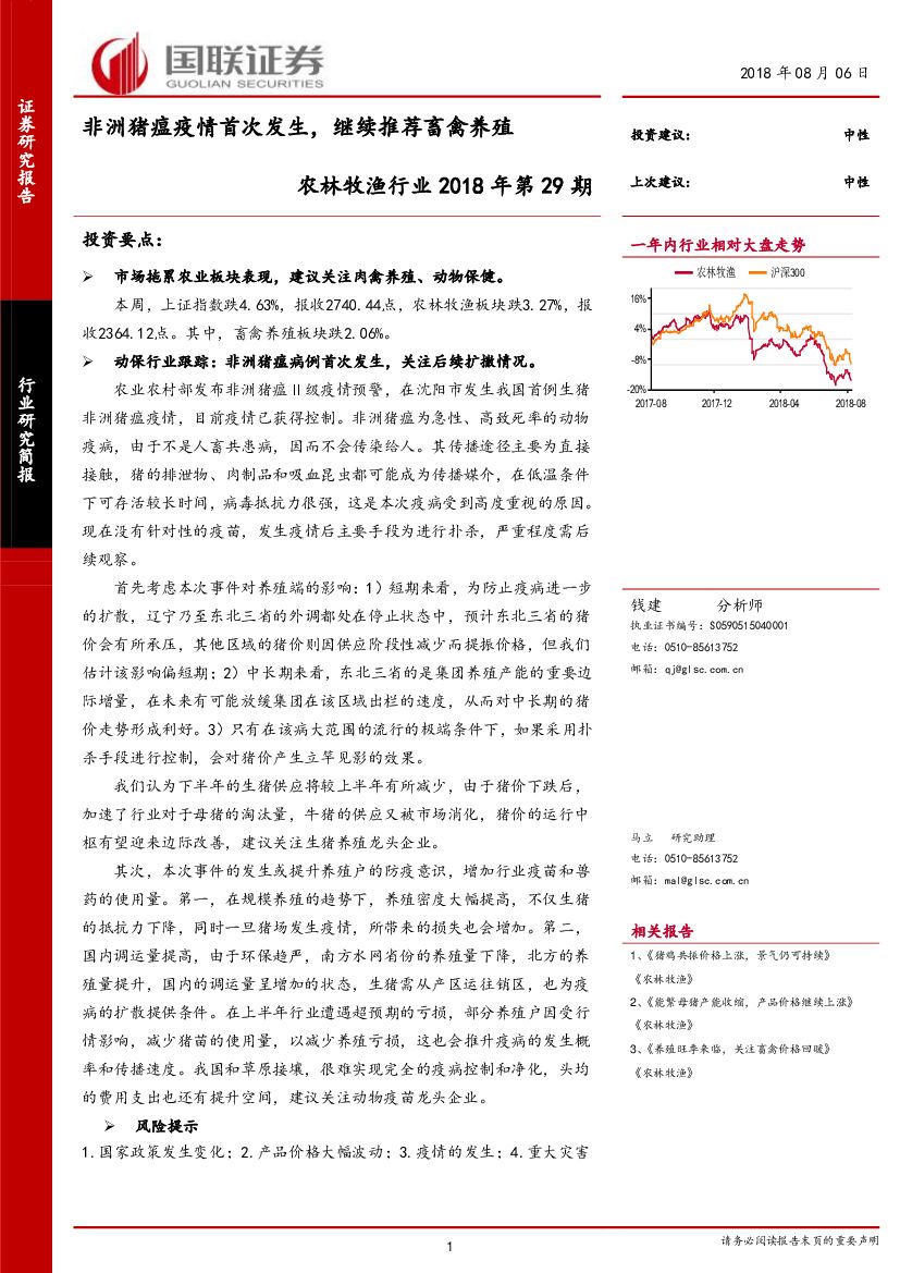 国联证券:农林牧渔行业2018年第29期:非洲猪瘟疫情首次发生,继续推荐畜禽养殖.pdf