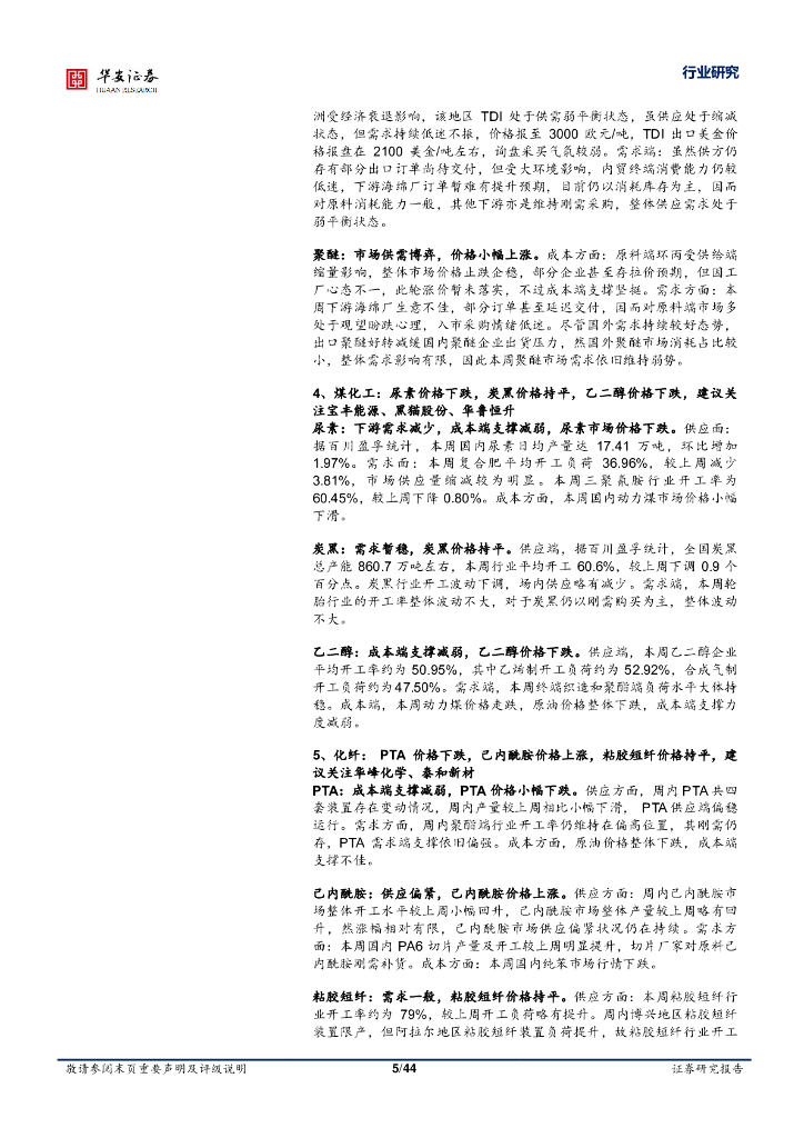 华安证券:基础化工行业周报:化工企业进入检修停产高峰期,黄磷、PVC价差扩大.pdf