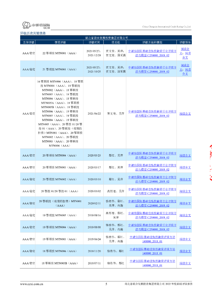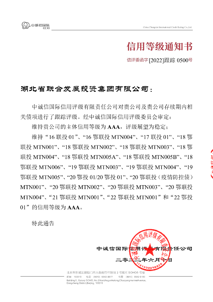 中诚信:湖北省联合发展投资集团有限公司2022年度跟踪评级报告.pdf