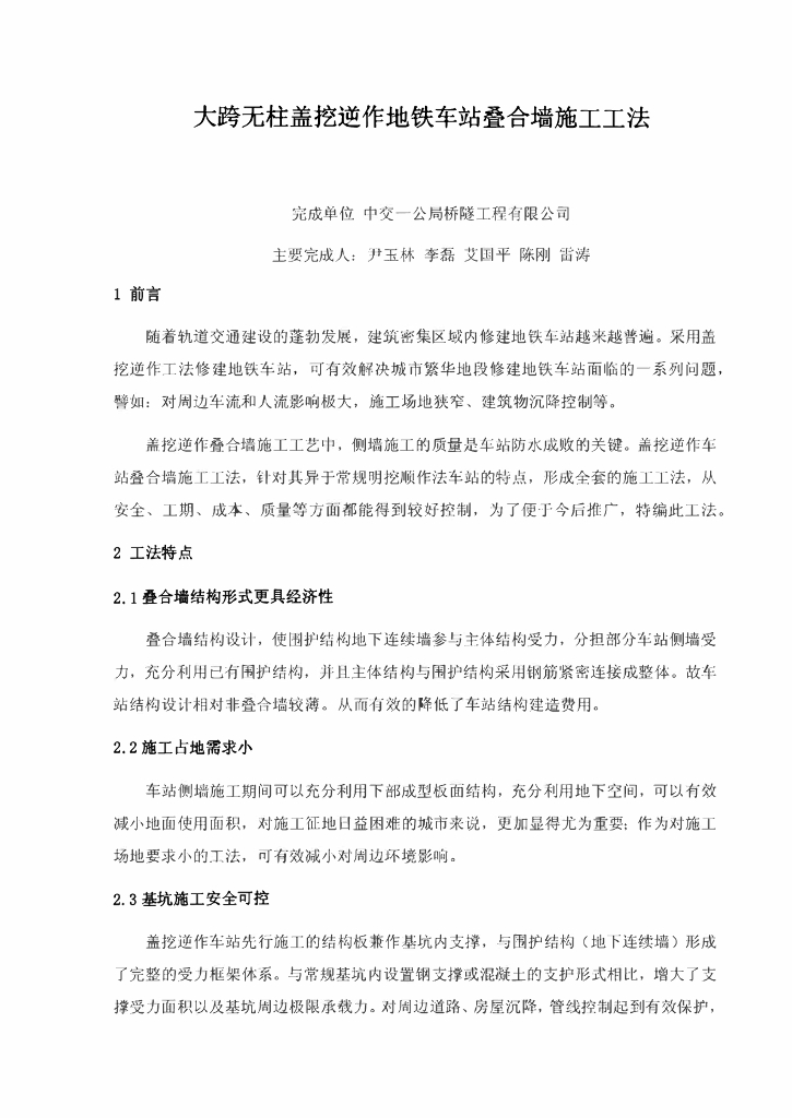 大跨无柱盖挖逆作地铁车站叠合墙施工工法.pdf