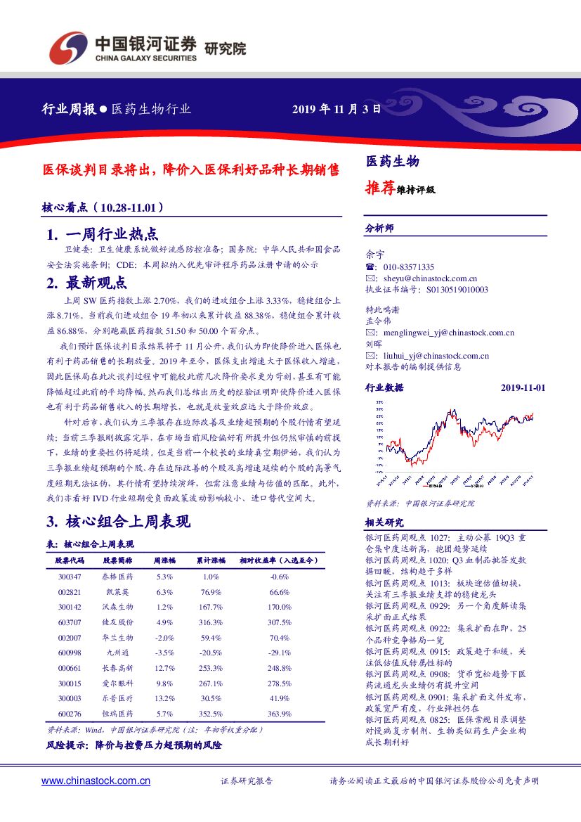 中国银河:医药生物行业:医保谈判目录将出,降价入医保利好品种长期销售.pdf