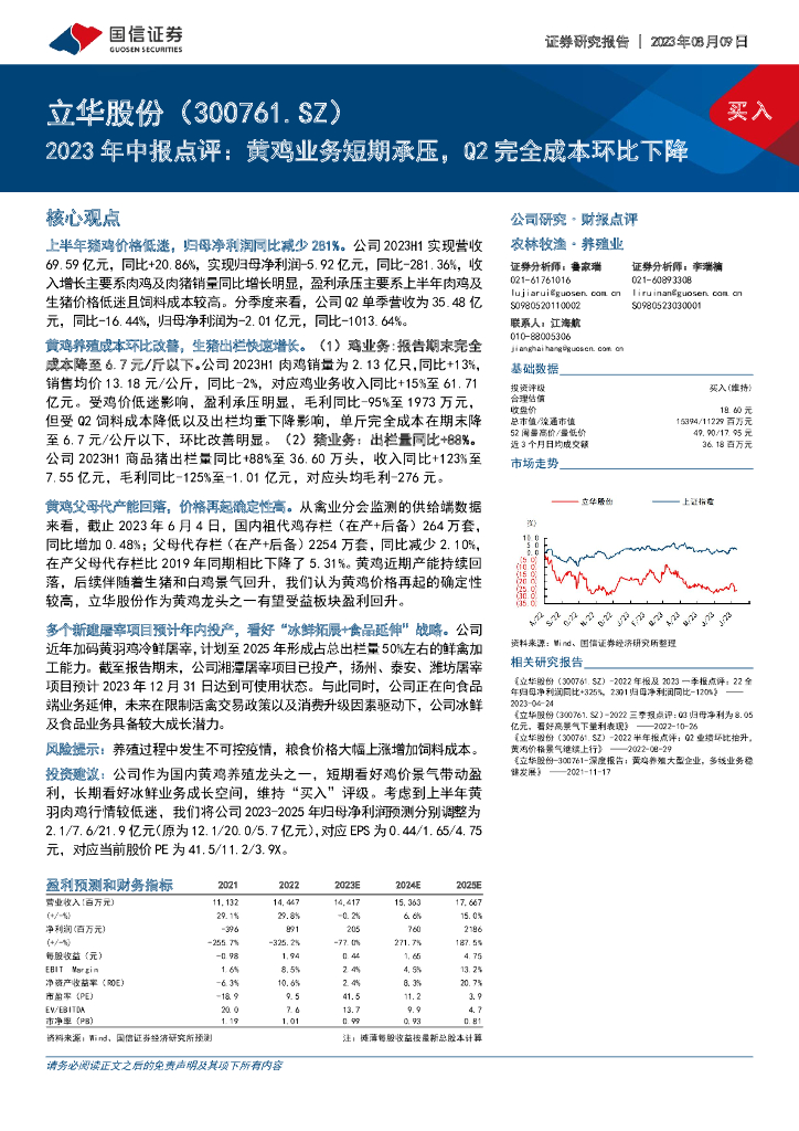 国信证券:立华股份(300761)-2023年中报点评:黄鸡业务短期承压,Q2完全成本环比下降.pdf