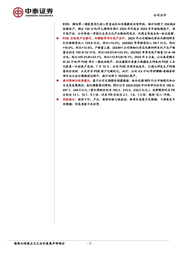 中泰证券:万华化学(600309)-二季度业绩符合预期,重点项目持续推进.pdf