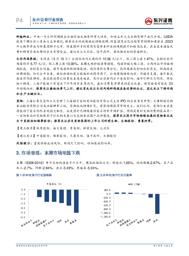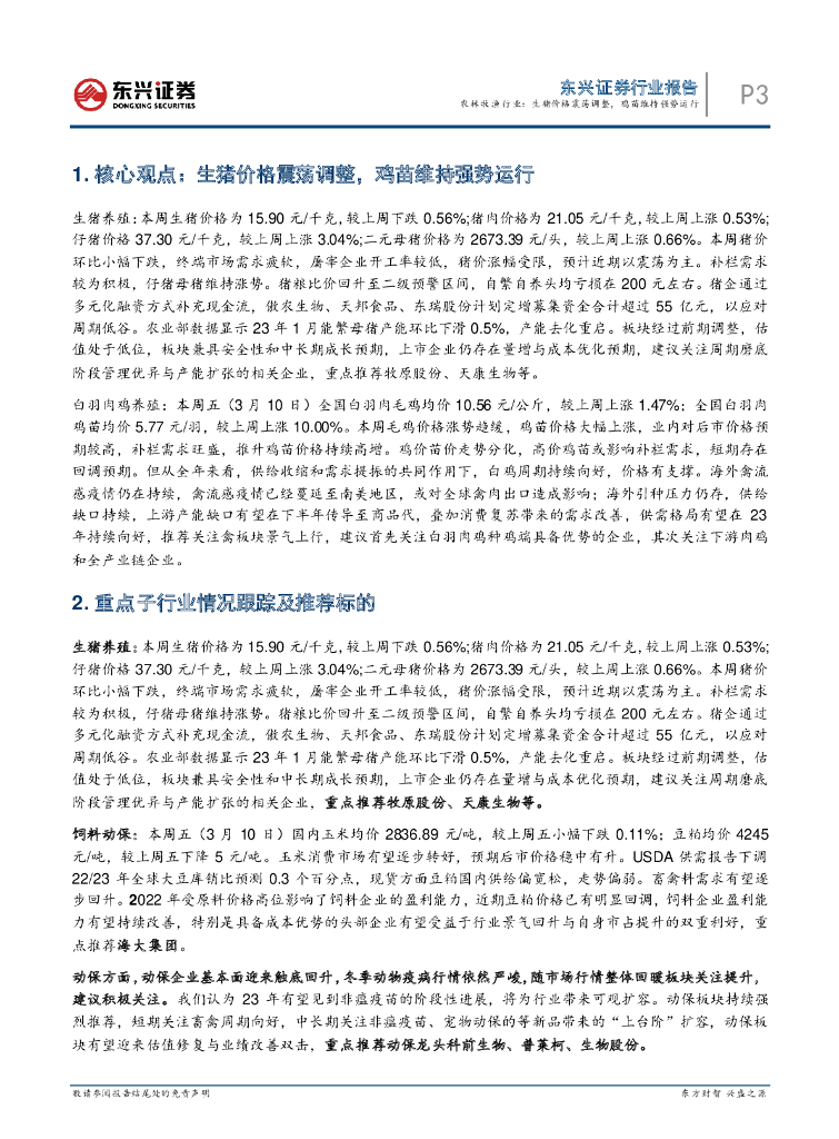 东兴证券:农林牧渔行业周观点(2023年第10周):生猪价格震荡调整,鸡苗维持强势运行.pdf