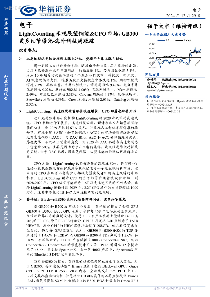 华福证券:电子行业海外科技周跟踪:LightCounting乐观展望铜缆&CPO市场,GB300更多细节曝光.pdf