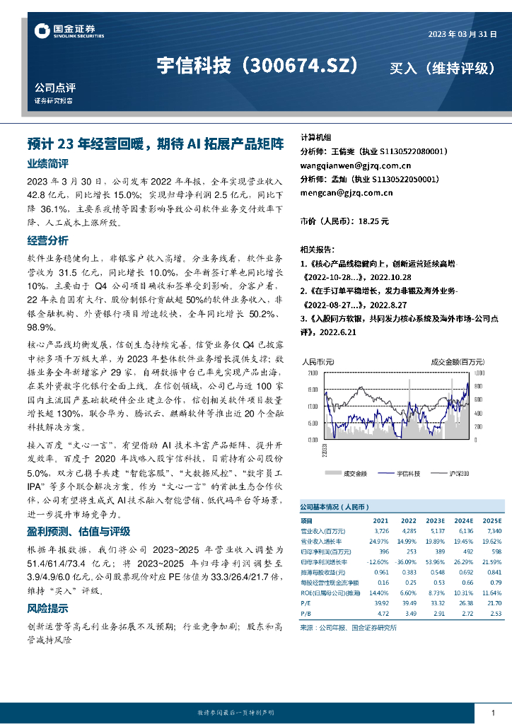国金证券:宇信科技(300674)-预计23年经营回暖,期待AI拓展产品矩阵.pdf