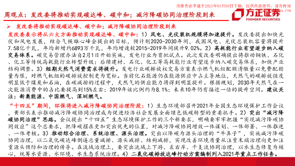 方正证券:发改委将推动实现碳达峰、碳中和;减污降碳协同治理阶段到来.pdf