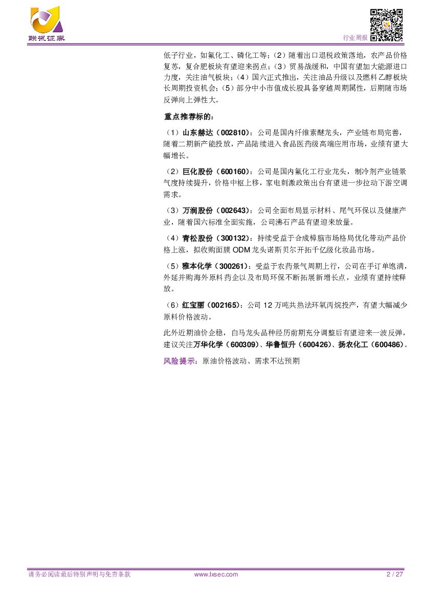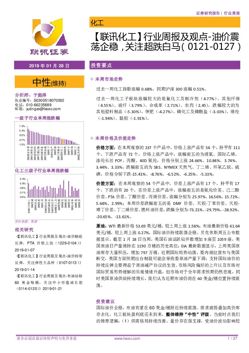 联讯证券:【联讯化工】行业周报及观点-油价震荡企稳,关注超跌白马.pdf