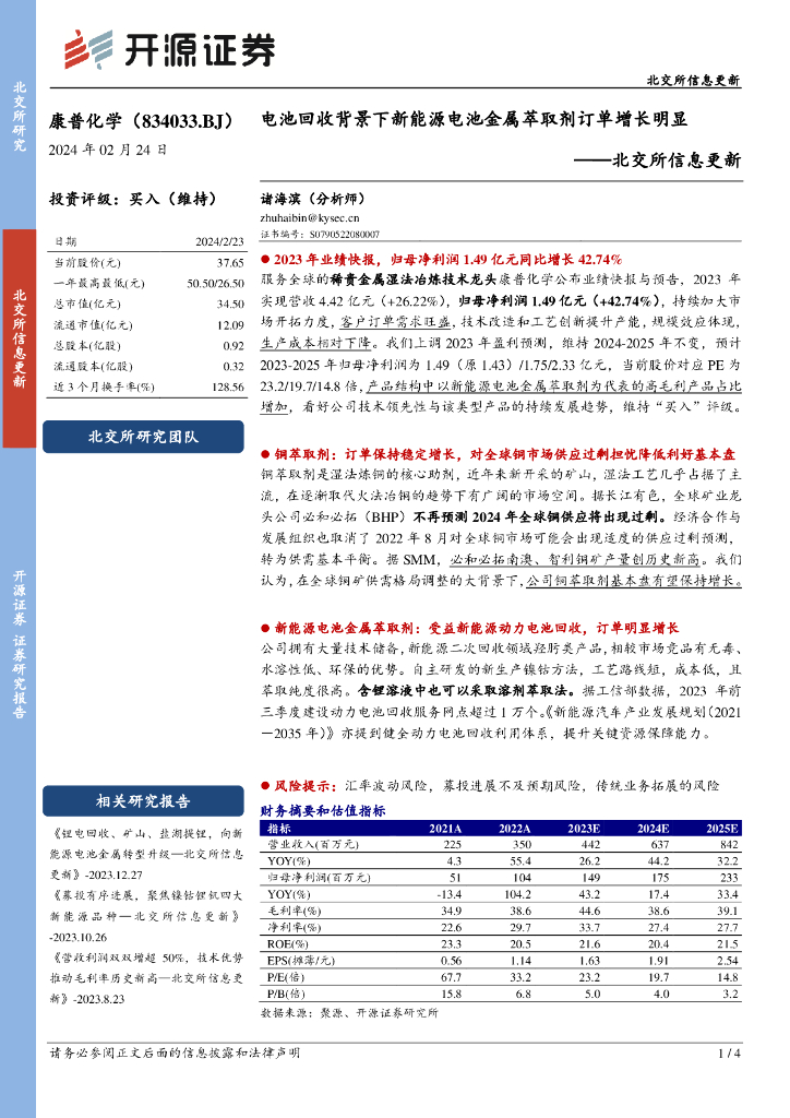 开源证券:康普化学(834033)-北交所信息更新:电池回收背景下新能源电池金属萃取剂订单增长明显.pdf