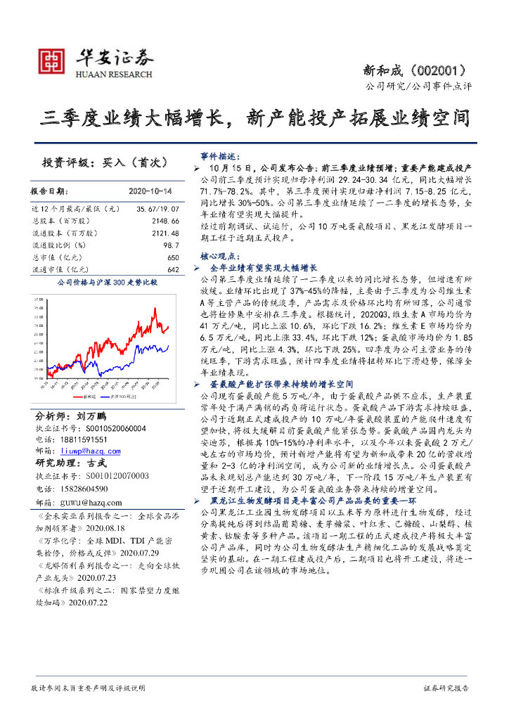 华安证券:新和成(002001)-三季度业绩大幅增长,新产能投产拓展业绩空间.pdf