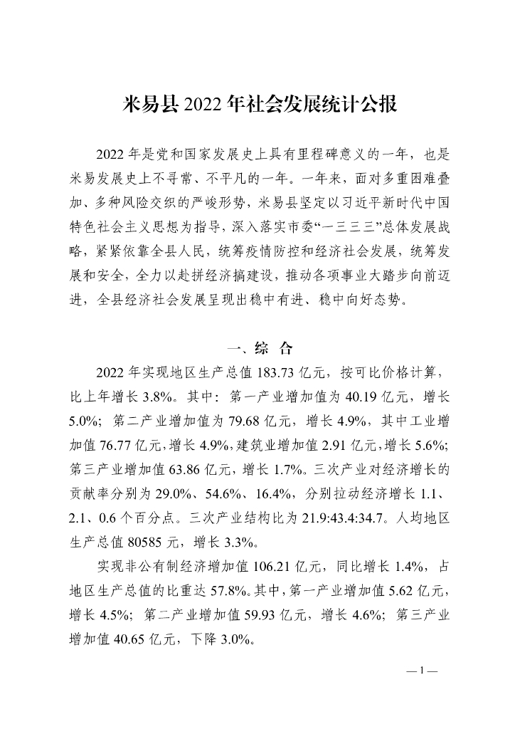 米易县2022年社会发展统计公报.pdf