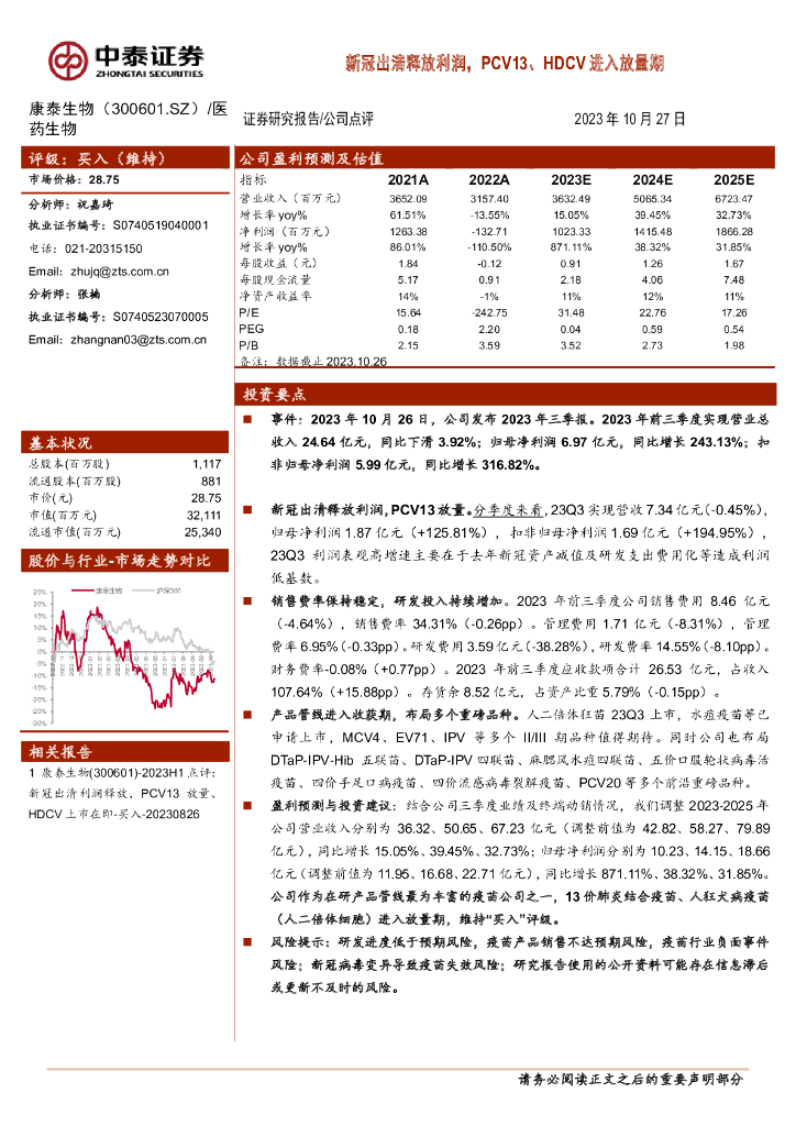 中泰证券:康泰生物(300601)-新冠出清释放利润,PCV13、HDCV进入放量期.pdf