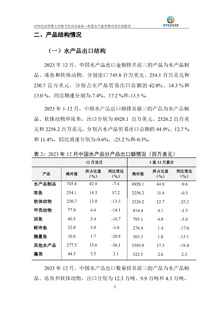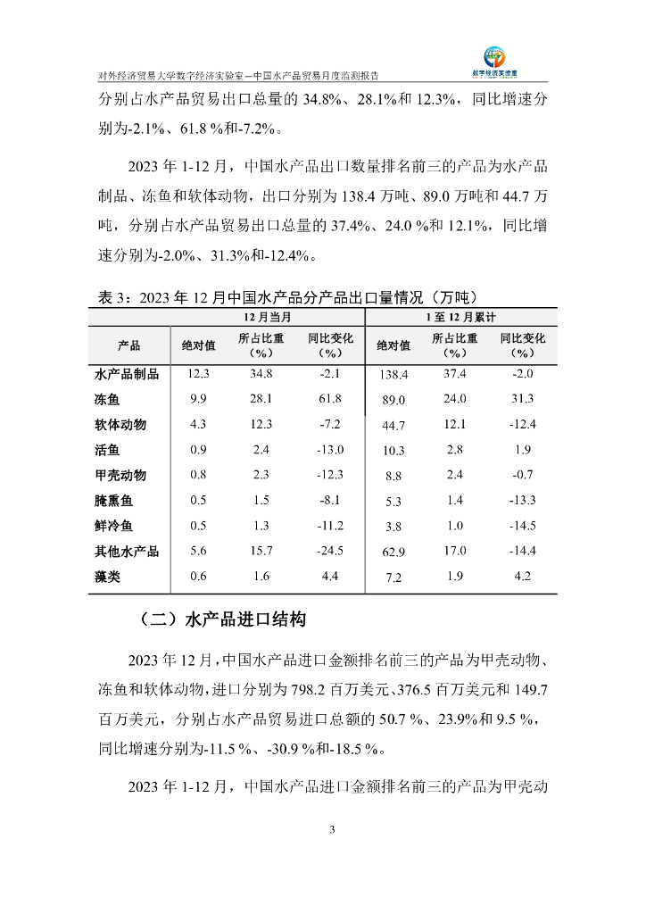 对外经济贸易大学:中国水产品贸易月度监测报告(2023年1-12月).pdf