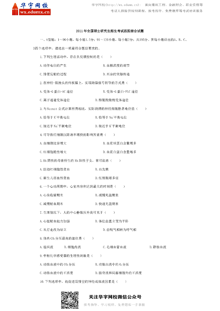 2011年全国硕士研究生招生考试西医综合试题.pdf