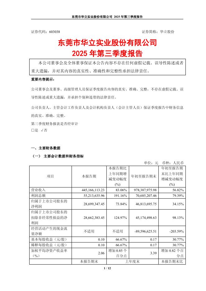 603038-华立股份:2025年第三季度报告.pdf