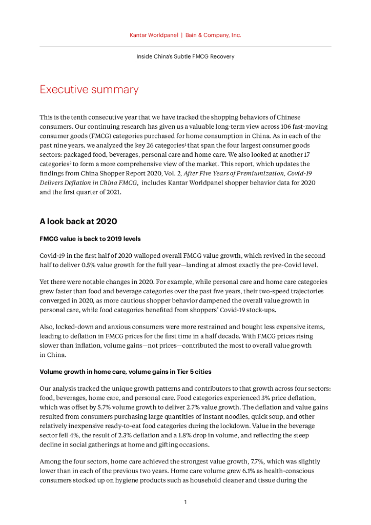 贝恩&凯度:2021年中国购物者报告,系列一,中国快速消费品市场温和复苏【中英文版】.pdf