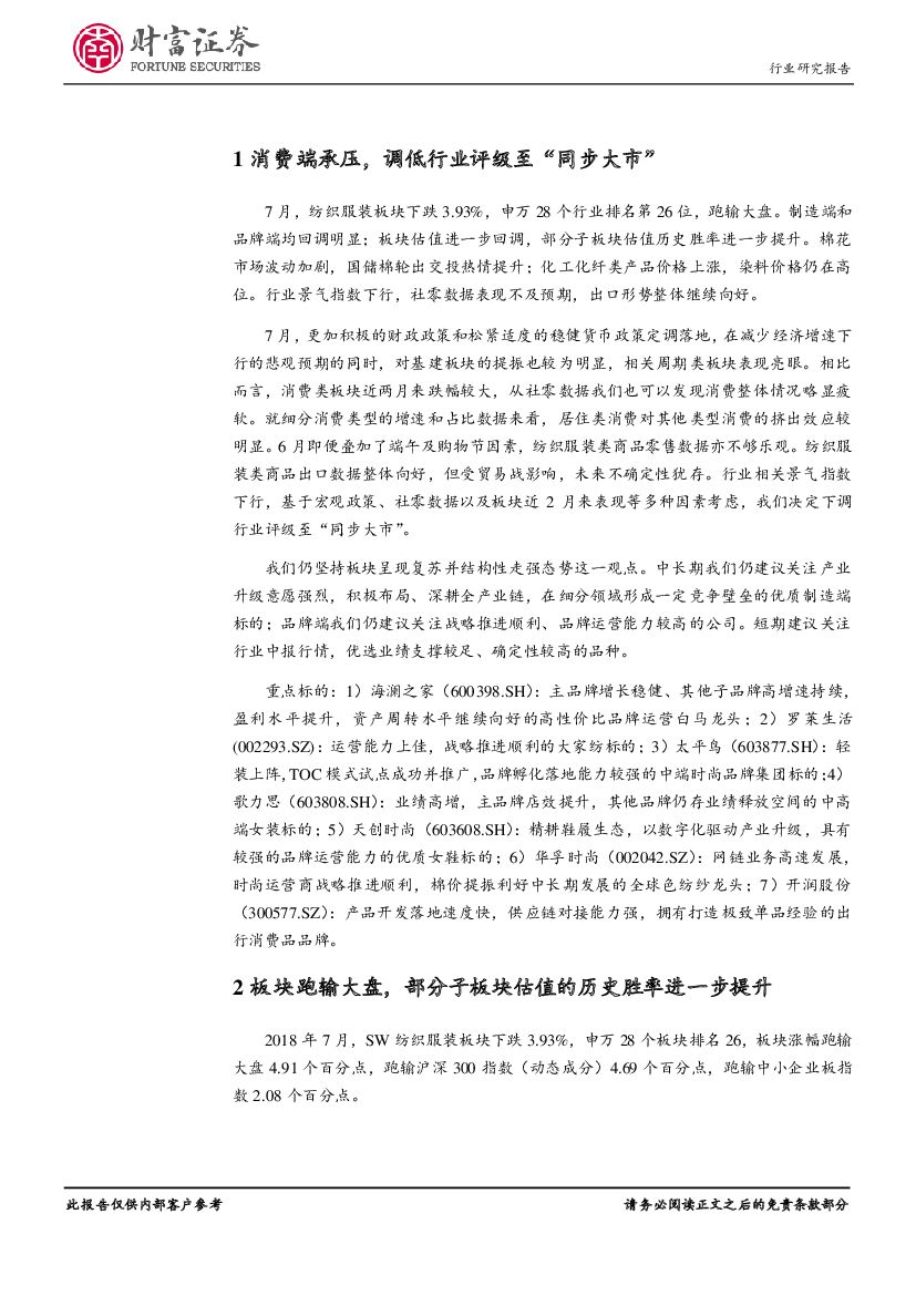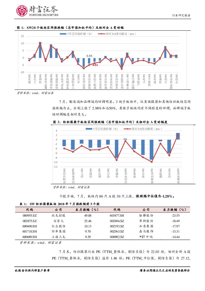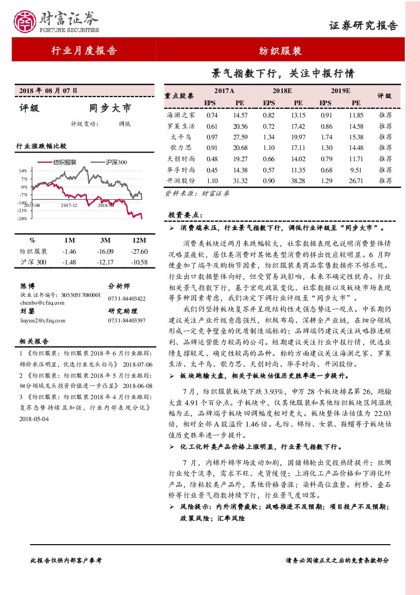 财富证券:纺织服装行业月度报告:景气指数下行,关注中报行情.pdf