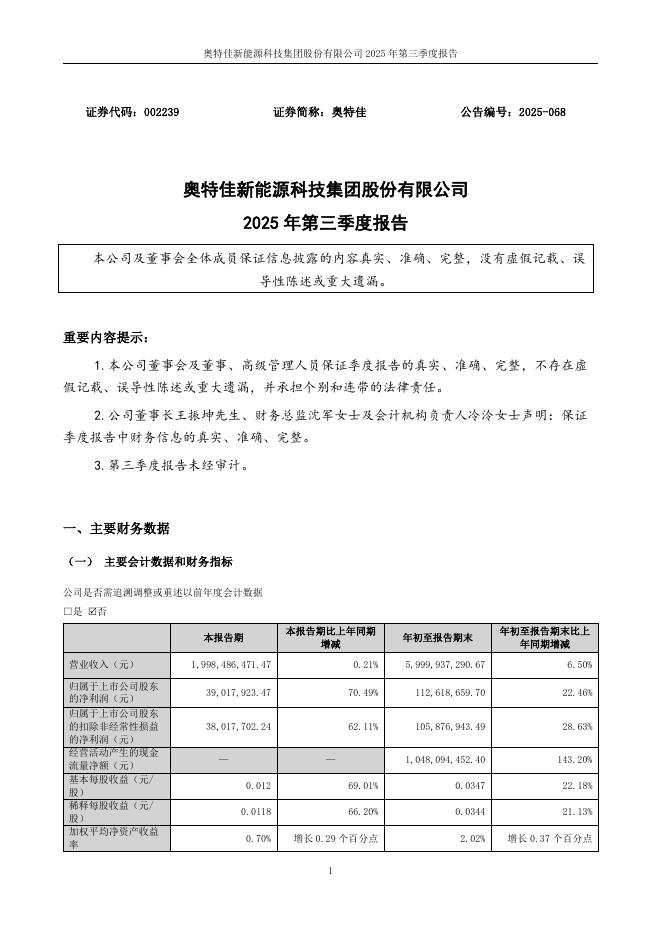 002239-奥特佳:2025年三季度报告.pdf