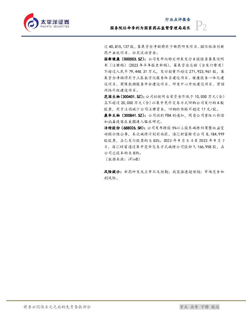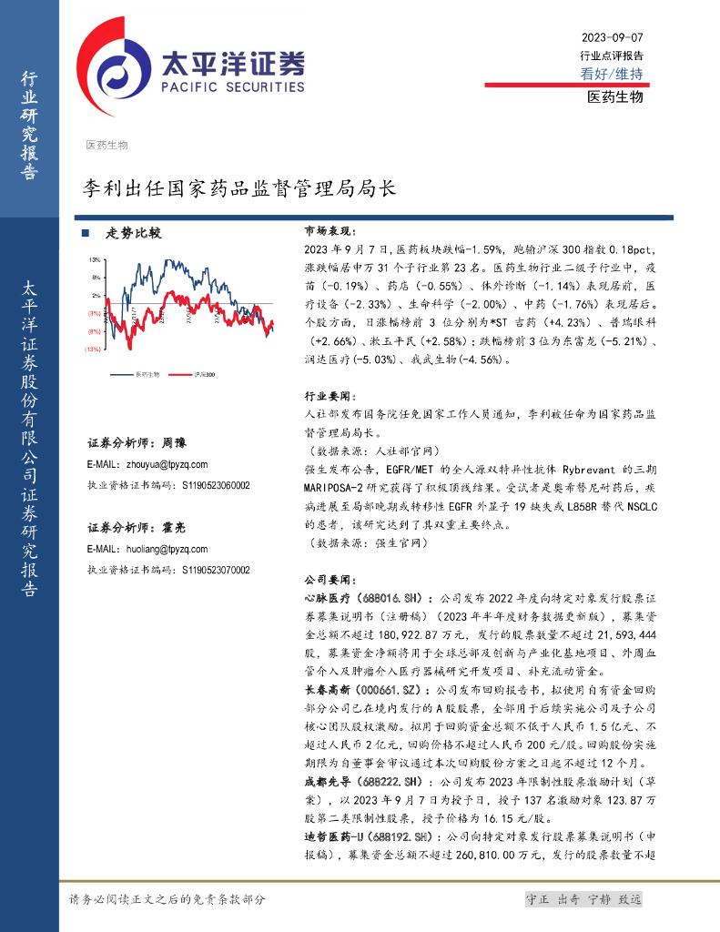 太平洋证券:医药生物:李利出任国家药品监督管理局局长.pdf