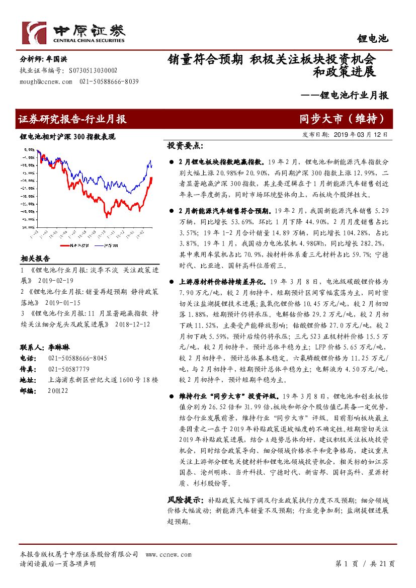 中原证券:锂电池行业月报:销量符合预期 积极关注板块投资机会和政策进展.pdf