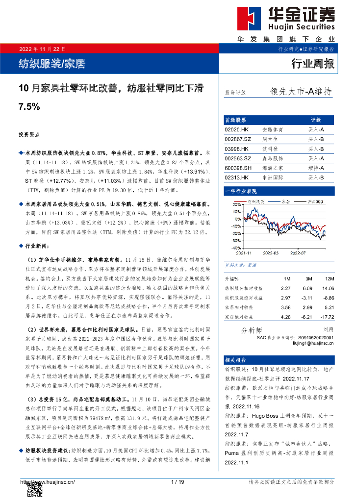 华金证券:纺织服装/家居行业周报:10月家具社零环比改善,纺服社零同比下滑7.5%.pdf