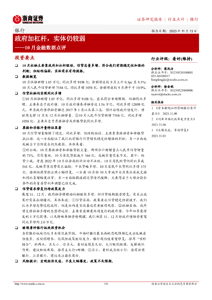 浙商证券:银行:10月金融数据点评——政府加杠杆,实体仍较弱.pdf