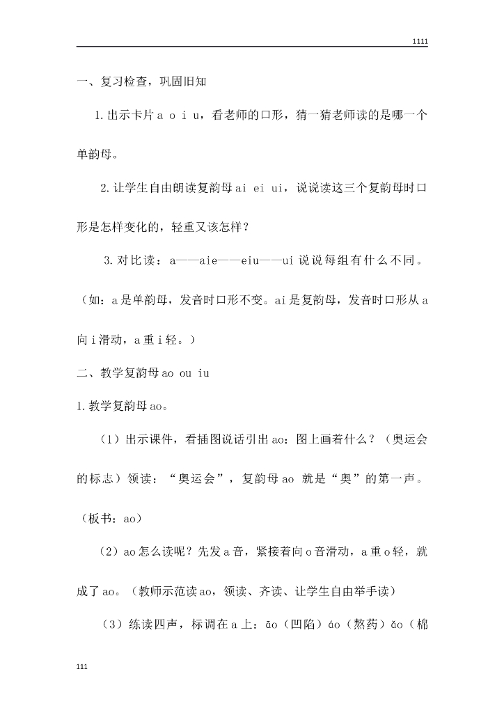 一年级语文(教案1)10 ao ou iu教学设计.doc