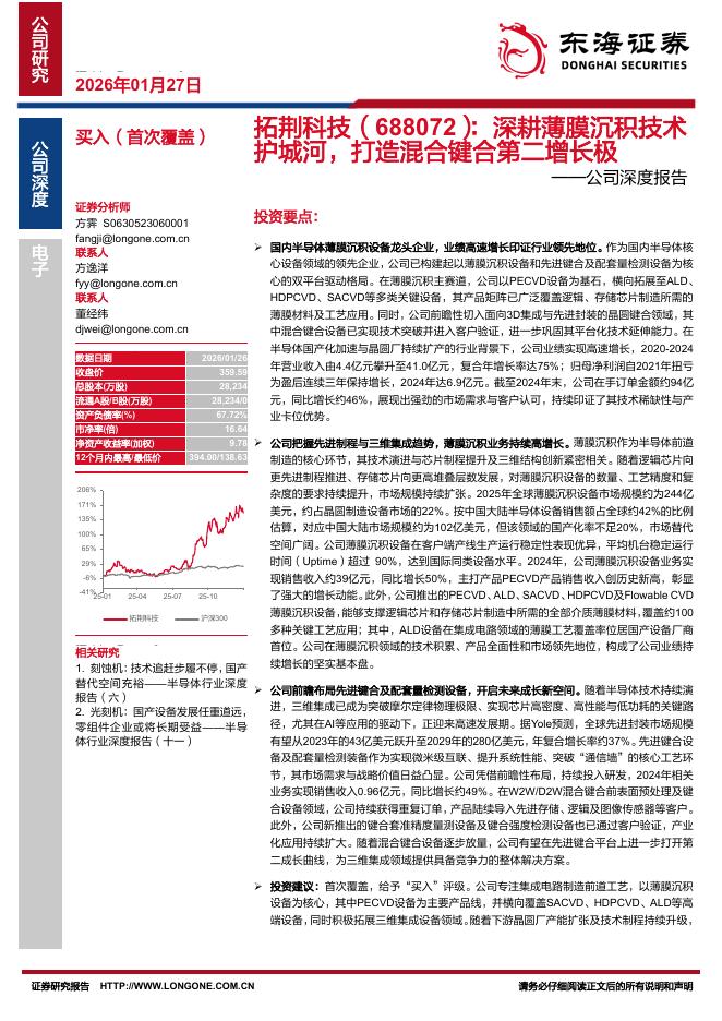 东海证券:拓荆科技(688072)-公司深度报告:深耕薄膜沉积技术护城河,打造混合键合第二增长极.pdf